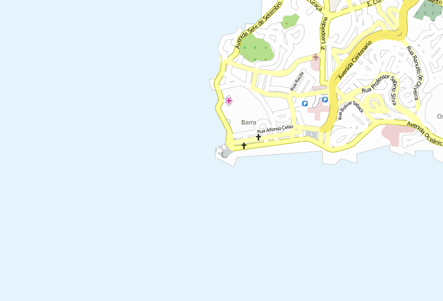 In der direkten Umgebung sind bekannte Orten wie Leuchtturm Barra, Elevador Lacerda und Universidade Federal da Bahia. Häufig aufgerufen sind diese Stadtpläne: Church of Nosso Senhor do Bonfim, Salvador, Porto da Barra Beach, Leuchtturm Barra und São Francisco Church and Convent